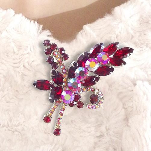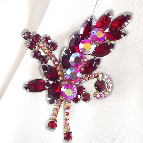 ジュリアナが製作したレッドのストーンがあしらわれたお花のブローチ縦ラインにオーロラ色に輝くストーン 周りにディープレッドのストーンがあしらわれています。 ストーンの状態もよく、全体的にきれいなコンディションです。 当時ジュリアナはタグをつけて販売していましたのでジュエリーにサインは入っていません。 深みのある赤でまとめられたシックなカラー。縦に長く襟もとにつけると華やかさがアップ! ▶ 商品詳細★ サイズ:7.6cm×5.6cm ★ 重さ:30g ※10円玉1枚5g ★ 素材: ガラス、合金 ★ サイン: なし ★ コンディション:★★★★☆ ▶ 詳細写真
